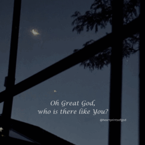 I sit in thestillnessof thisbrand new day. As my eyesgaze uptowardthe heavens,I see Yourbeauty on display. A sliverof the moon. A star stillshining bright. And my heartwithout thought,without prompting,without metelling it to do…